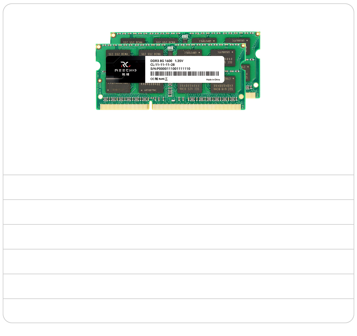 模块规格:260-Pin SO-DIMM